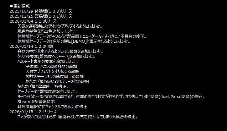 またアップデート1.1.6も完了済みです。(DLSite, FANZA, Steam全て)